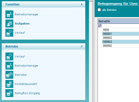 ![]() | Wenn Sie die Meldung „Sie haben nicht die nötigen Berechtigungen auf den Betrieb!“ erhalten, prüfen Sie bitte bei den Betriebsstammdaten in der Lasche „BelegBox“, ob Sie für diesen Betrieb berechtigt sind. |