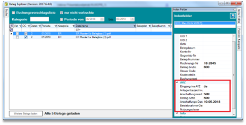 Wurden über den OCR-Scan Belegdatum, Rechnungsnummer uä erkannt, werden diese automatisch auch im AVZ vorgeschlagen.
