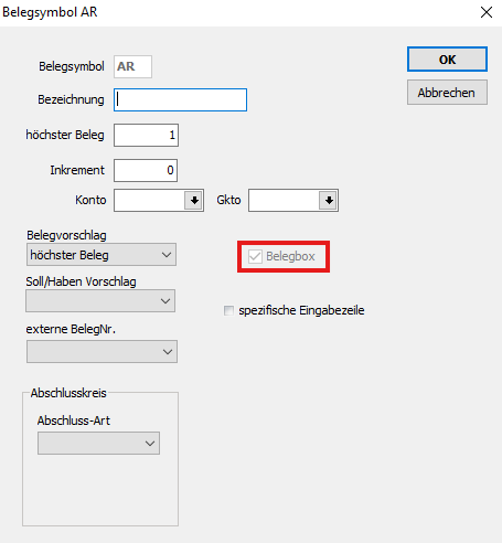Wurde die Belegbox einmal hinterlegt, bleibt sie hinterlegt, der Belegkreis kann dann auch nicht mehr entfernt werden.