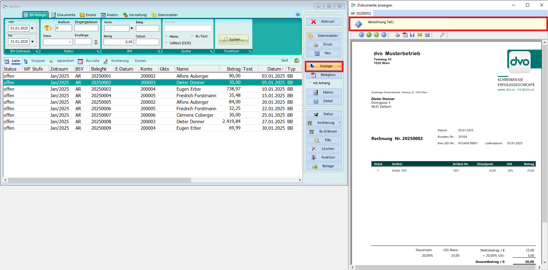 Etwaige im Belegbox-Webclient hinterlegte Freitexte (frei erfassbare Beleg-Texte für Vermerke) sind oberhalb des PDF im Kopfbereich des Fensters ersichtlich: